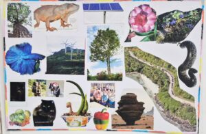 Participants were welcomed back in the afternoon to a session of basic instruction in Zen meditation. Unlike other forms of Buddhist meditation, Zen meditation, or zazen, involves very little instruction or teaching of methods. Simply, there is a great emphasis on maintaining a straight upright posture, then simply following the breath and becoming increasingly aware of the five senses. The practice is, therefore, amazingly direct and alarmingly uncluttered, with no techniques for the ego to hide behind or within. With the participants quiet and somewhat pensive awaiting instructions for death, Rev. Nemoto then unexpectedly had them engage in a one-hour Vision Board exercise. With a piece of white posterboard, a large pile of random magazines, glue, colored pens, and personal photos, participants created a collage of impressions of their lives—again, as with the zazen—with little explanation of purpose or goal. Participants seemed to enter a liminal place in their life experience, becoming children again making art, either quietly in a corner or yapping together with others.